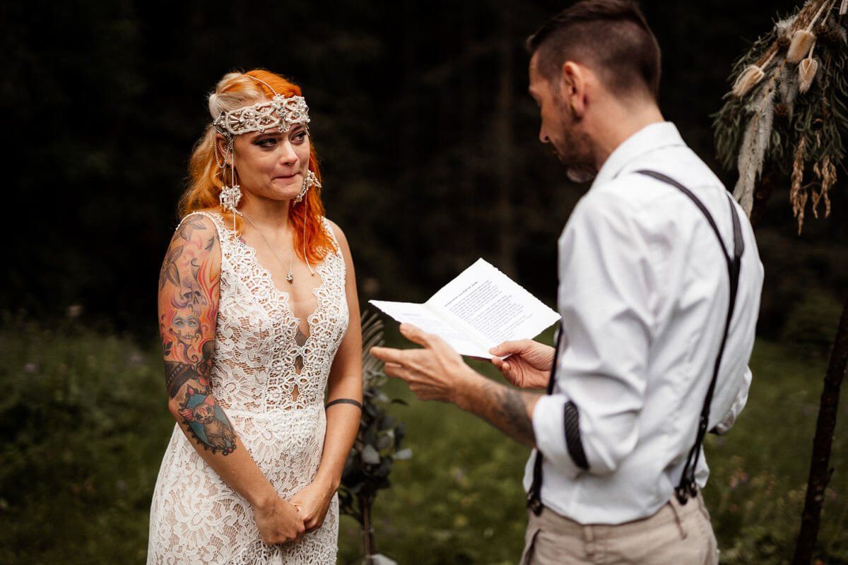 So habe ich mich mit den beiden im Vorfeld ausgetauscht, um sie kennen zu lernen und sie kamen in den Genuss einer echten, für sie geschriebenen Mini-Trauung, wenn auch mit eher ungewöhnlichen Elementen.
