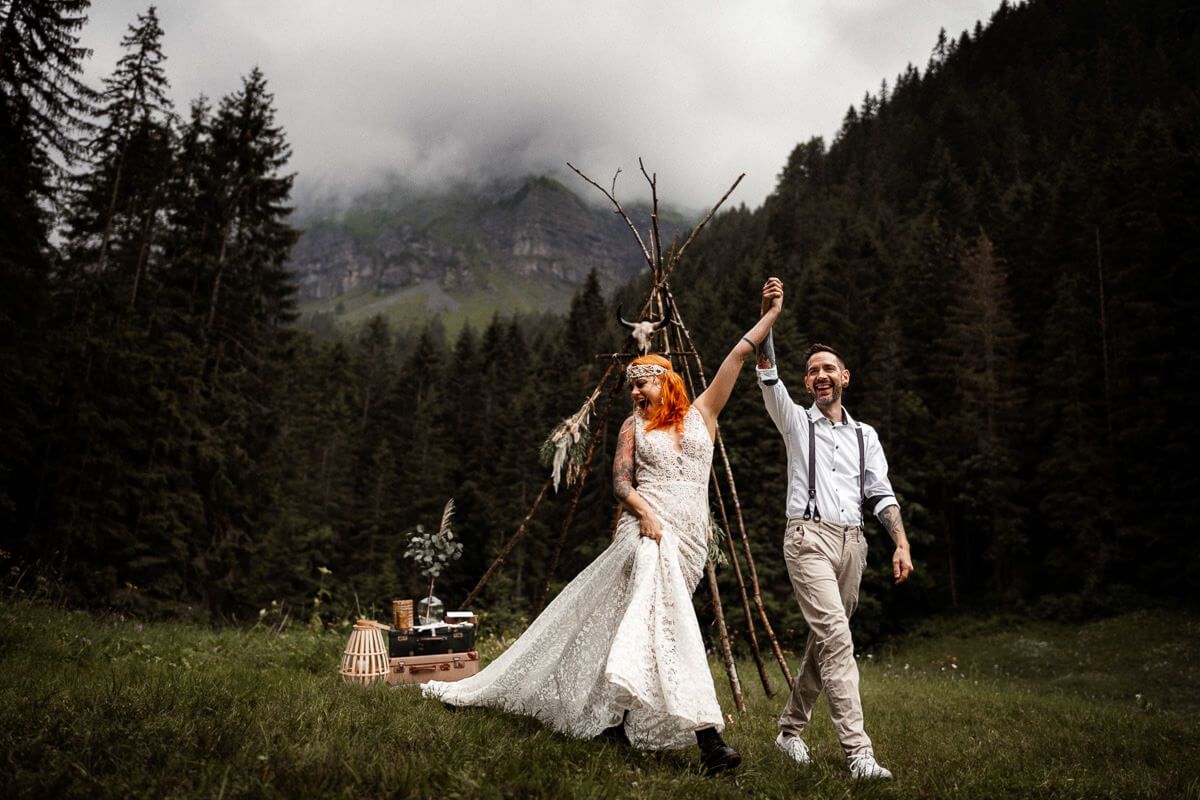 Man nehme ein absolut verliebtes und authentisches Brautpaar, neun Herzblut Hochzeits-Dienstleister und einen Fleck unberührte Natur im Herzen der Schweiz. Die Mission: Lasst uns gemeinsam die Schönheit und Vielseitigkeit einer Berghochzeit und Trauungszeremonie mit BOHO und Vintage-Elementen zeigen. Inspiration pur, umrahmt von der einladenden Schönheit der Schweizer Wiesen-, Wälder- und Bergpracht.