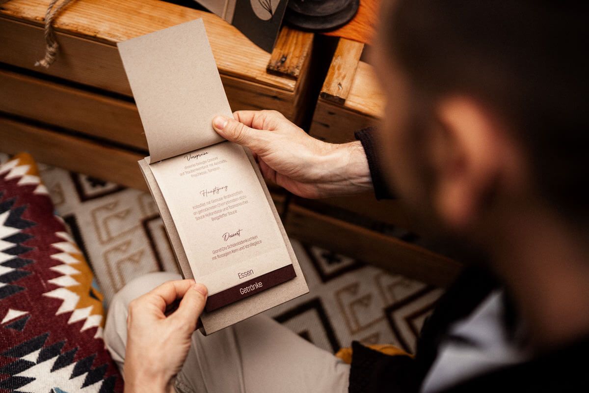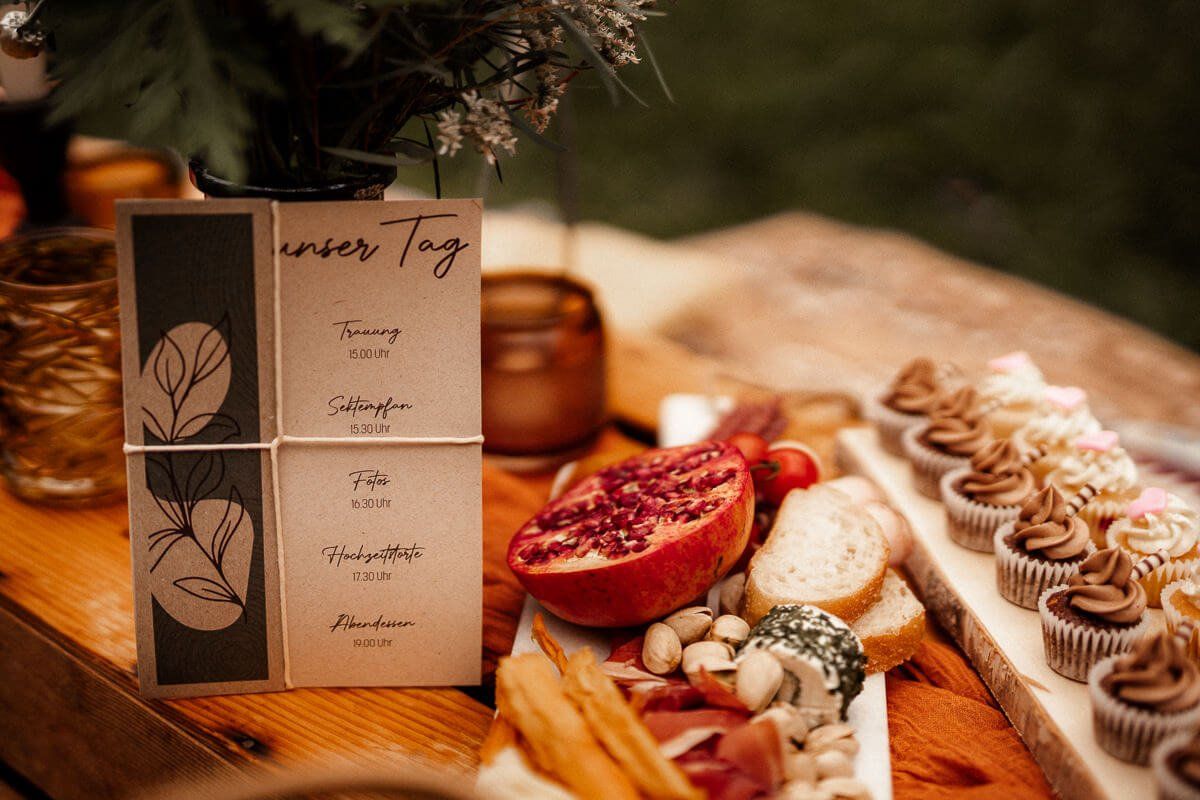 Ob Einladungskarte, Programmablauf oder Menükarte - die schlichten aber doch persönlichen Designelemente der Papeterie passen perfekt ins Konzept des Shooting-Stils.