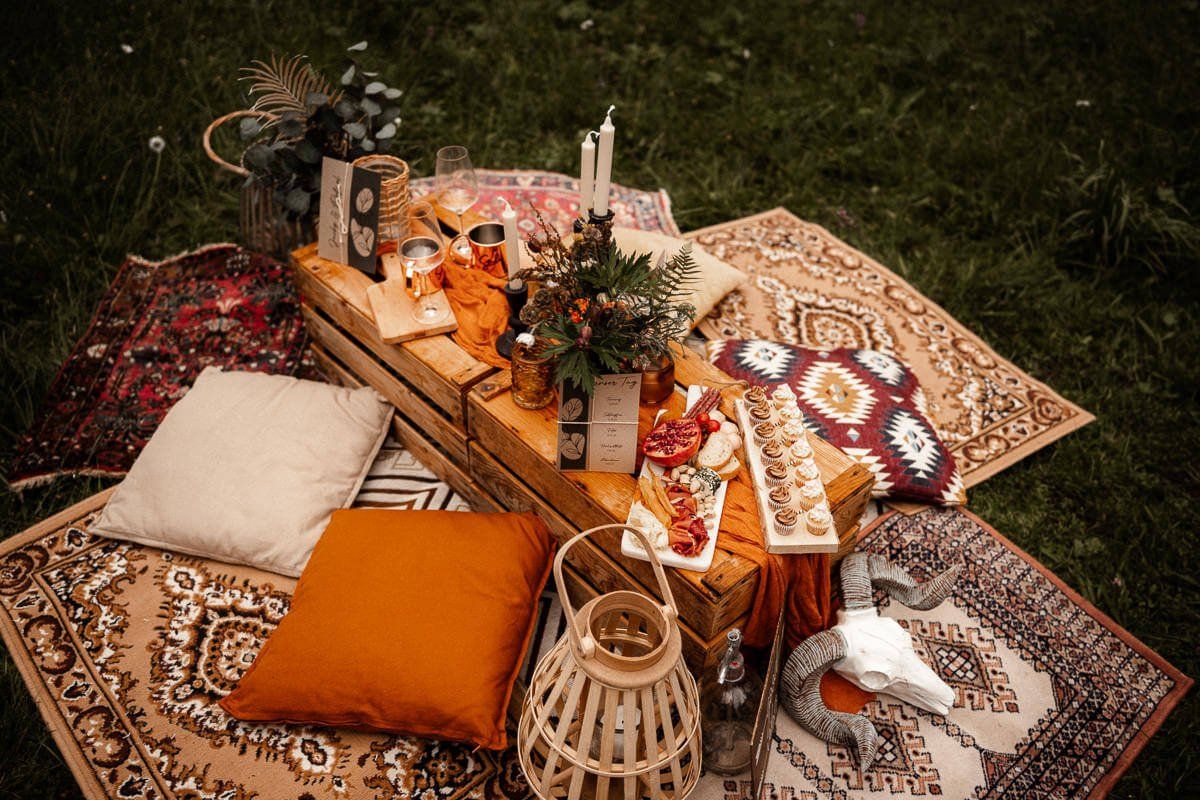Schlagwörter wie Spitze, Trockenblumen und Romantik-Picknick verleihen diesem Trend ein besonderes Ambiente.